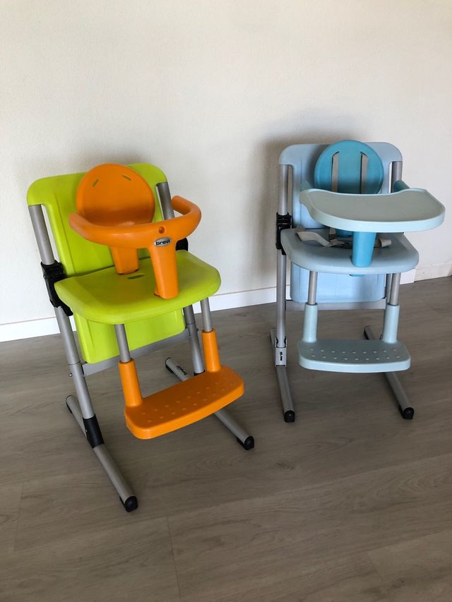 Detalles del productoSe venden dos sillas evolutivas de la marca Brevi modelo Skex. Son de color verde lima y azul celeste, y están en buen estado.
