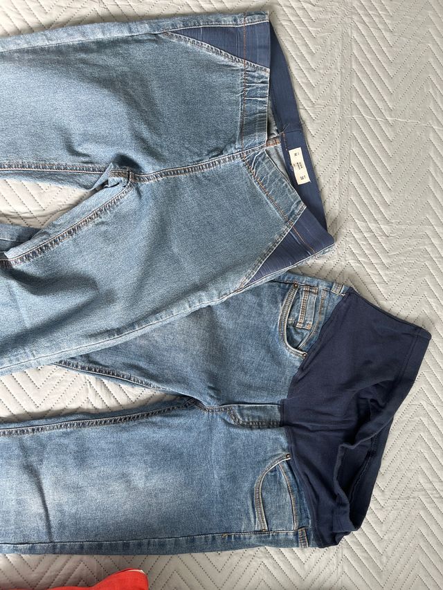 2 Vaqueros Premamá Talla 38 y L que sería una 40.