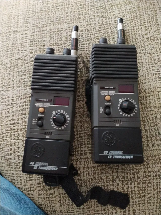 Se venden dos walkies GE de 40 canales, un clásico de los años 80. - Modelo: GE 40 Channel CB Transceiver. - Incluye dos unidades. - Antenas originales.