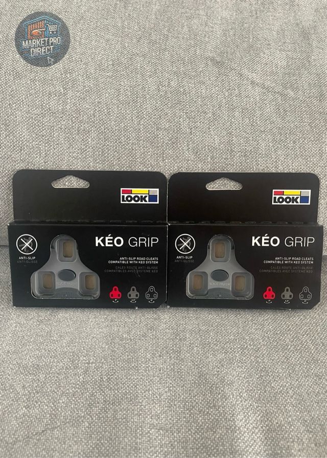 Se venden dos pares de calas Look Keo Grip con sistema antideslizante. Completamente nuevas, sin estrenar y precintadas.