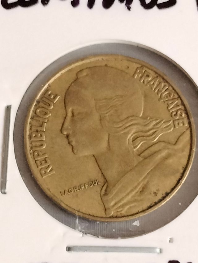 Moneda de 20 céntimos de Francia, acuñada en el año 1972. Presenta el diseño de la República Francesa. - Ceca búho. - No envío fotos por WhatsApp.