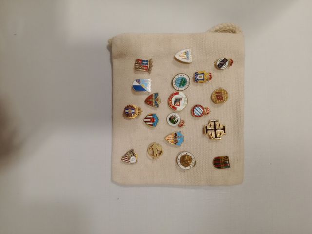 Detalles del productoColección de 20 insignias de equipos deportivos. Ideales para coleccionistas. - Son insignias esmaltadas. - Están en buen estado. - Se venden juntas en una bolsita de tela.