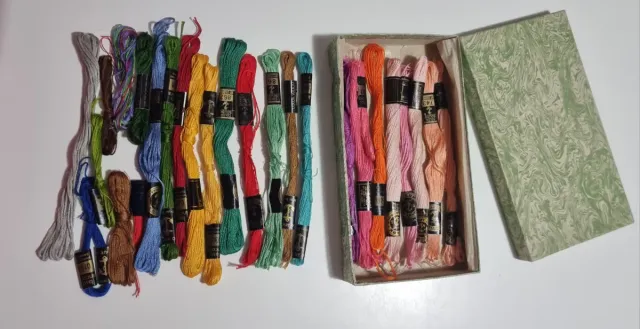 Detalles del productoLote de 20 madejas de hilo para bordar en una variedad de colores vibrantes.