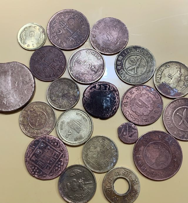 lote 20 monedas de Nepal, muy usadas, muy desgastadas, antiguas, muchas de cobre, no sé fechas de emisión,
