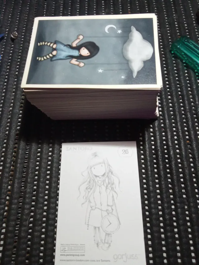 Detalles del productoColección de 200 cromos de la marca Gorjuss by Santoro. Cada cromo presenta un diseño único de la popular colección.