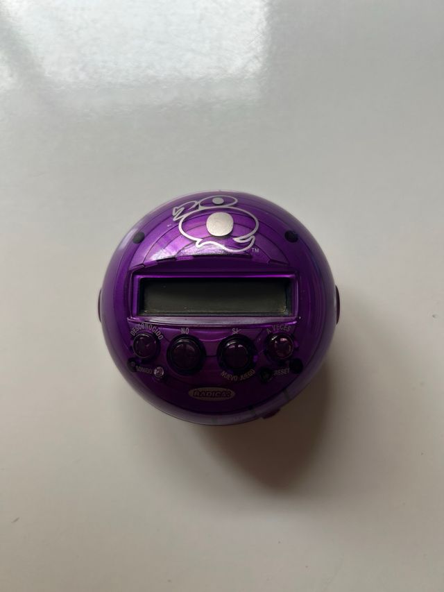 Juego electrónico 20Q de color morado. Está en buenas condiciones. - Es un juego portátil. - Tiene una pantalla LCD. - Incluye varios botones para jugar.