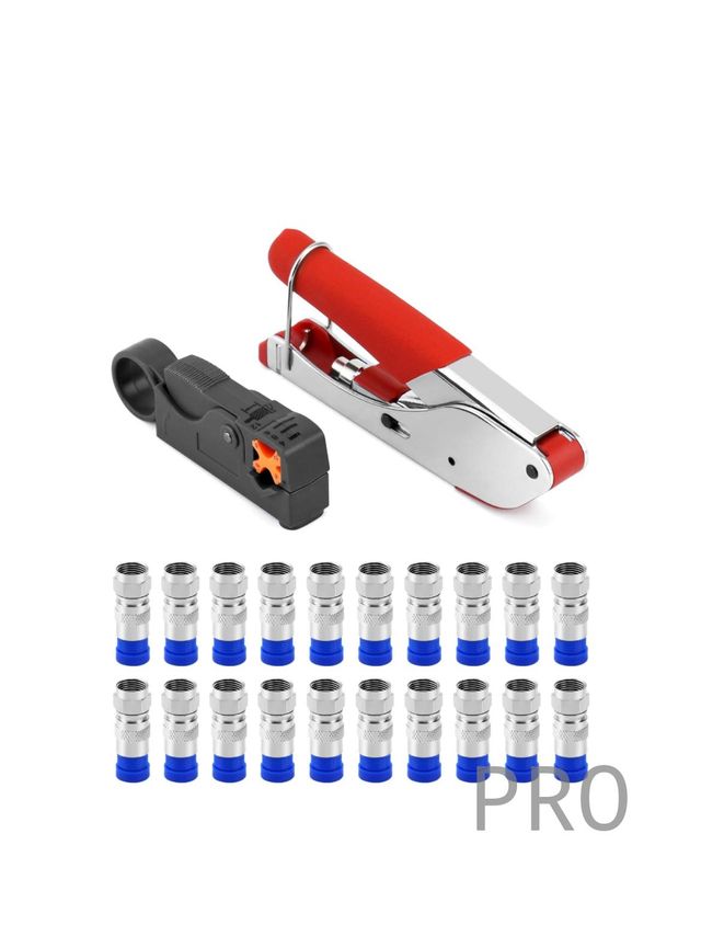 QWORK® 22 Piezas Juego de Herramientas de Prensado de Cable Coaxial con Pelacables y 20 x Conector F para Cable RG6 y TV por Cable