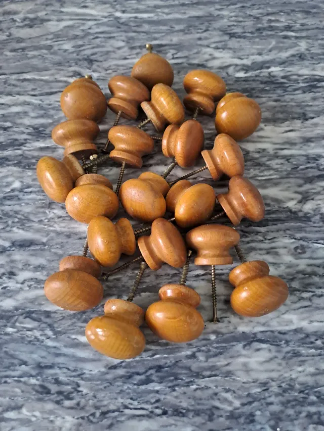 Lote de pomos de madera para dar un toque rústico a tus muebles. - Material: Madera. - Diseño clásico y elegante. - Ideales para cajones, armarios o puertas.