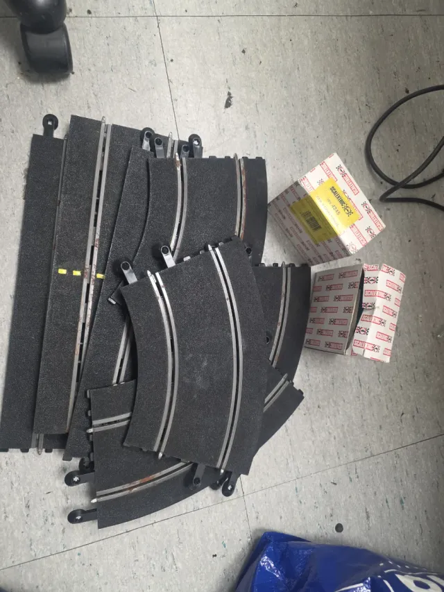 Conjunto de peraltes para circuitos Scalextric. - Variedad de tramos rectos y curvos. - Conexiones para montaje.