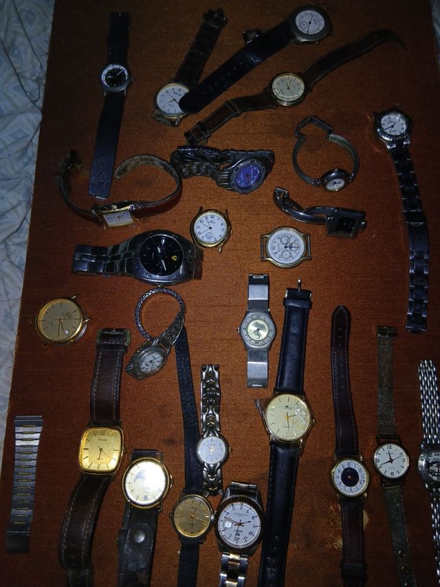 Detalles del productoSe venden 24 relojes antiguos. Ideales para piezas o reparación. Algunos presentan señales de uso y desgaste. - Se venden tal cual se ven en las fotos. - Perfectos para coleccionistas o aficionados a la relojería. - No se garantiza su funcionamiento.No se Admite devolucion pues se venden para restaurar o piezas seaN como sean y estén.