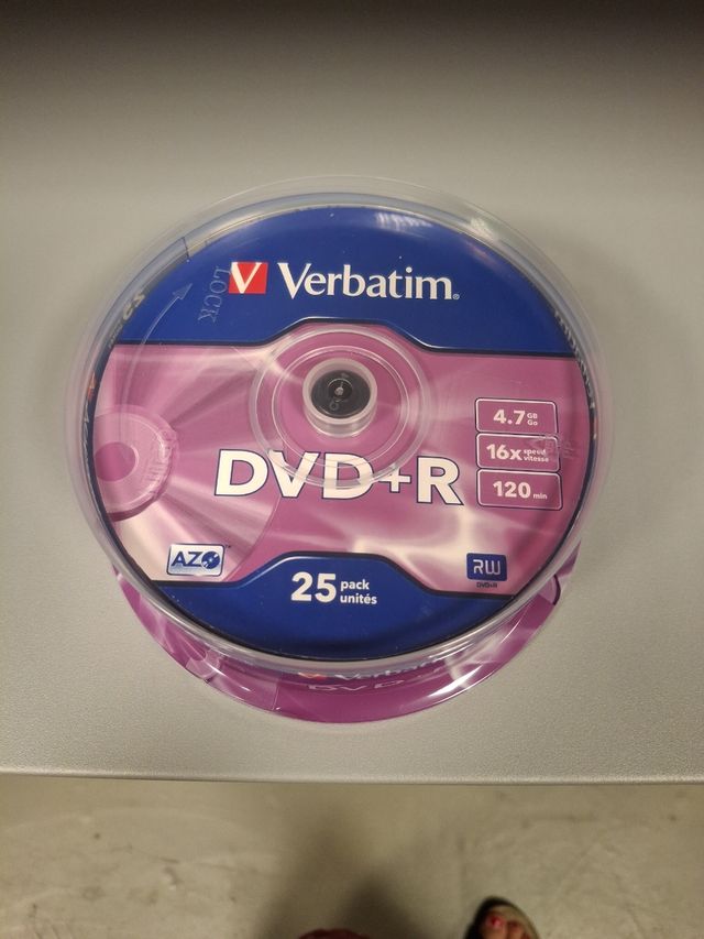 Detalles del productoVendo 25 unidades de DVD+R de la marca Verbatim. Son discos vírgenes, listos para usar.