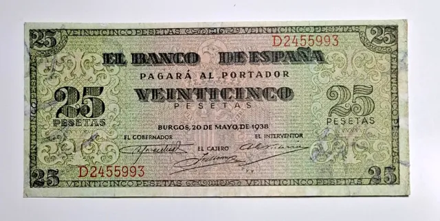 Detalles del productoBonito billete de 25 Pesetas de 1938 Serie D245