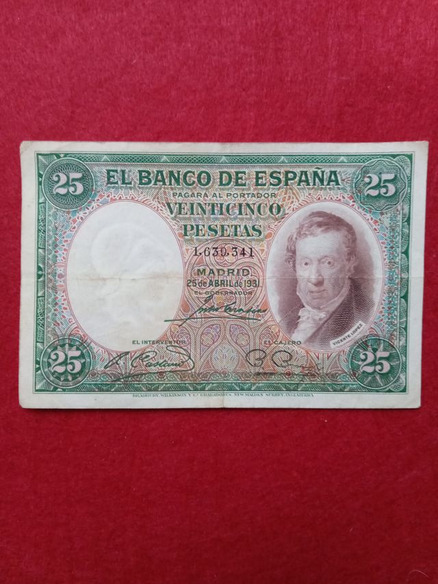 25 pesetas 25 de abril de 1931 Vicente Lopez ( republica española)