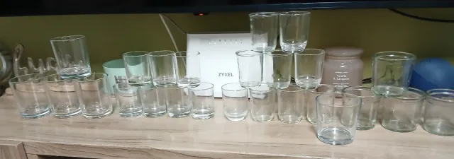 Detalles del productoLote de 25 vasos de vidrio transparente en diferentes tamaños. Son ideales para cualquier ocasión.