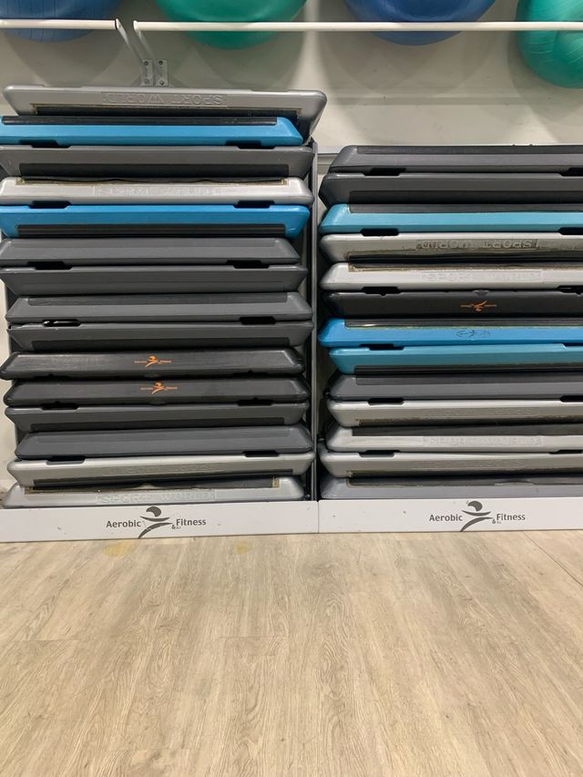Detalles del productoSe venden 28 plataformas de step de Aerobic Fitness. Están en buen estado y se venden con sus bases. Ideales para clases de aerobic o entrenamiento personal.