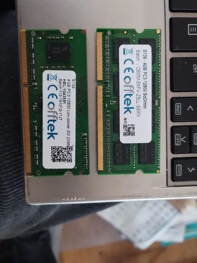 Detalles del productoDos módulos de memoria RAM DDR3 SODIMM de 4GB cada uno.