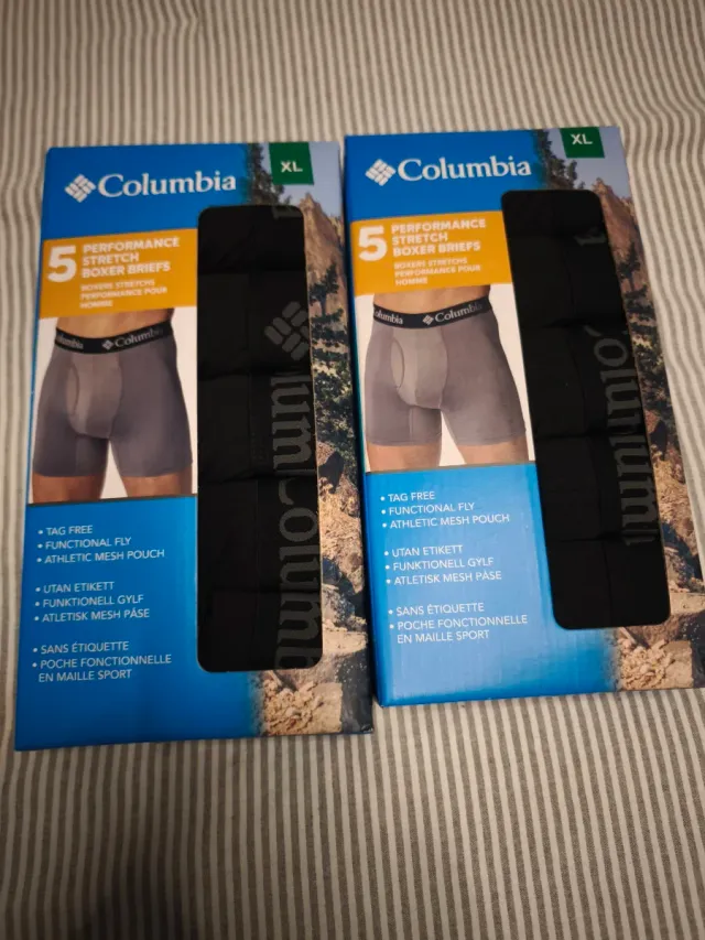 Pack de 10 calzoncillos tipo bóxer de la marca Columbia. Vienen en dos paquetes de 5 unidades cada uno.