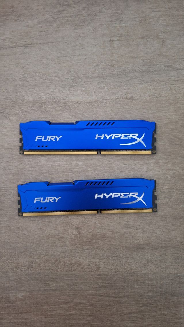 Dos módulos de memoria RAM Kingston HyperX Fury. - Color azul vibrante. - Diseño con disipador de calor. - Logo HyperX grabado.