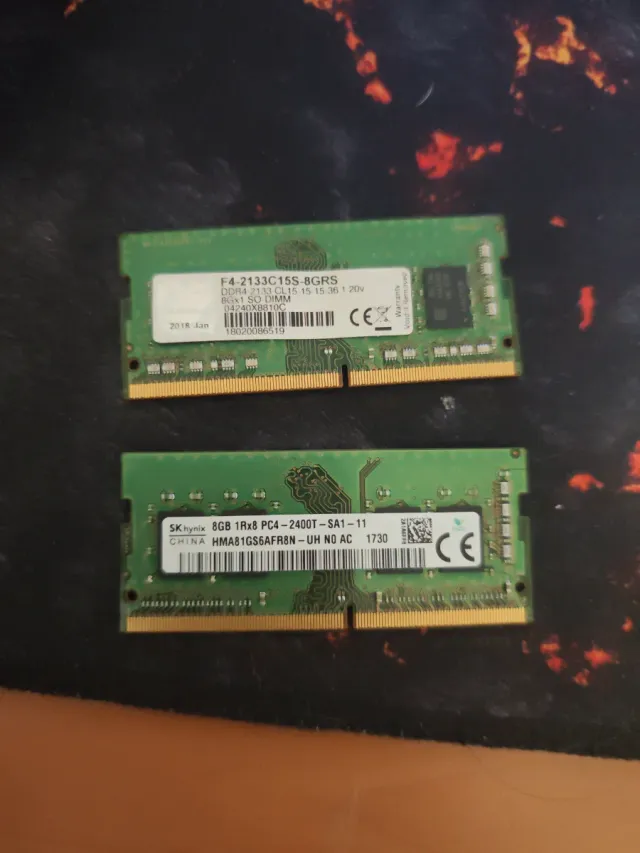 Detalles del productoSe venden dos módulos de memoria RAM DDR4 de 8GB cada uno, sumando un total de 16GB.