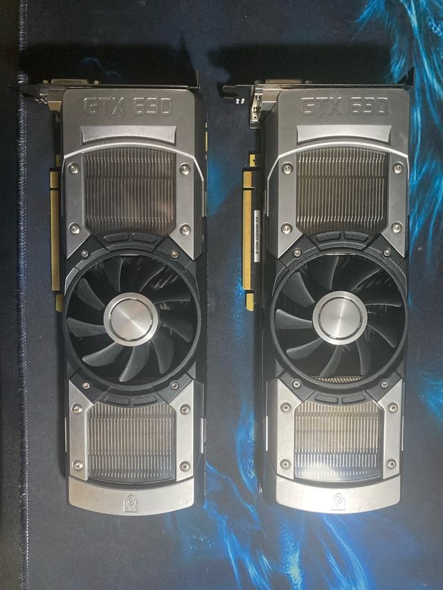 Se venden dos tarjetas gráficas Nvidia GTX 690. - Modelo: GTX 690 - Marca: Nvidia - Cantidad: 2 unidades para un quad SLI.