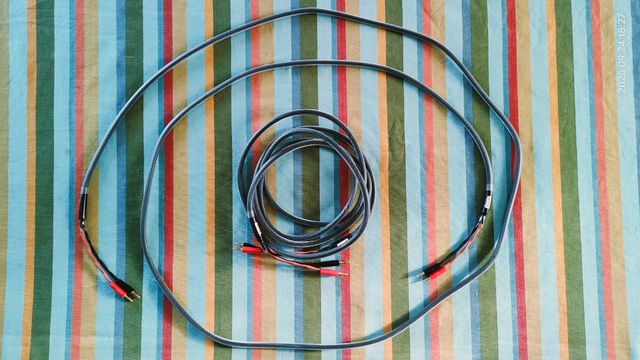 Detalles del producto2 cables muy bien construidos, de 3m cada uno para pareja de altavoces HiFi con terminación en bananas chapadas en oro 24k. Conductores internos de alta calidad hechos 100% en cobre libre de oxígeno (OFC) para un sonido limpio y detallado. Buen apantallamiento reforzado con nylon trenzado para eliminar cualquier posible interferencia electromagnética garantizando asi la máxima durabilidad, potencia y mejor calidad de sonido desde el amplificador a los altavoces.