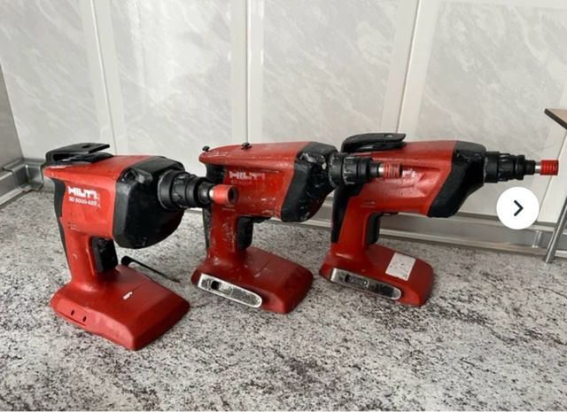 Tres atornilladores Hilti SD 8000-A22 usados. - Tres unidades. - Modelo Hilti SD 8000-A22. - Color rojo.