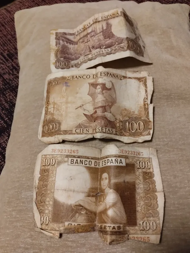 - Tres (3) billetes de 100 pesetas.