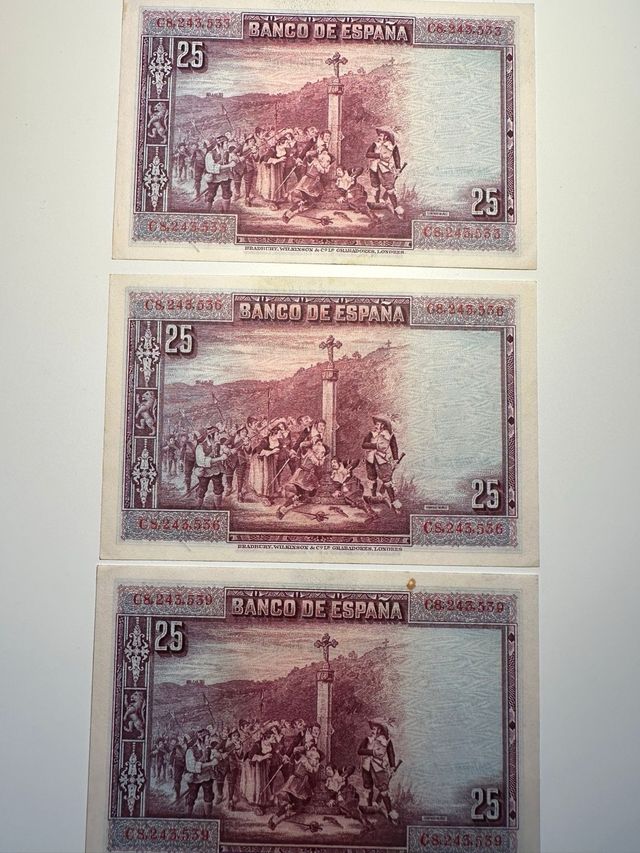 Detalles del producto🪙 3 Billetes 25 Pesetas – 1928
