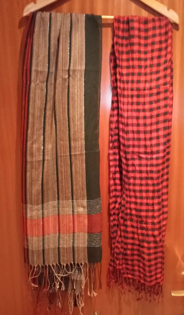 3 Bufandas de color Marrón,roja y negro