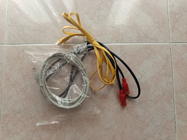 Se venden tres cables RJ45. Están en buen estado. - Incluye un cable gris y dos cables de colores. - Uno nuevo en su embalaje y 2 nuevos