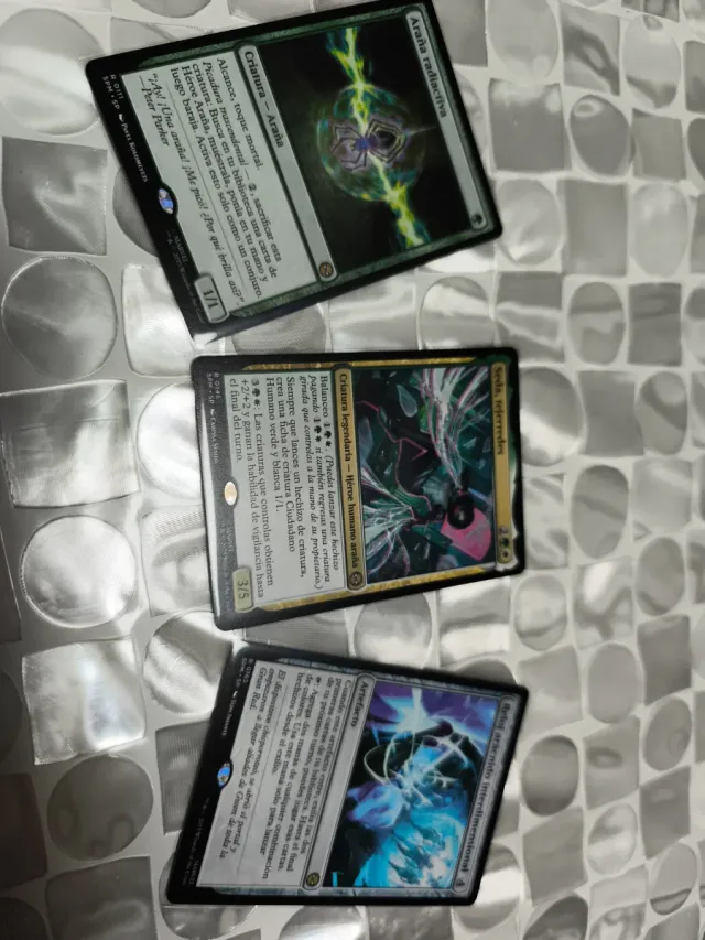 Detalles del productoLote de 3 cartas raras de Magic: The Gathering con temática de Spiderman.
