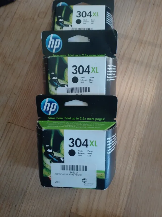 Lote de tres cartuchos de tinta HP 304XL en color negro. - Cartuchos de tinta originales HP. - Modelo: 304XL. - Color: Negro.