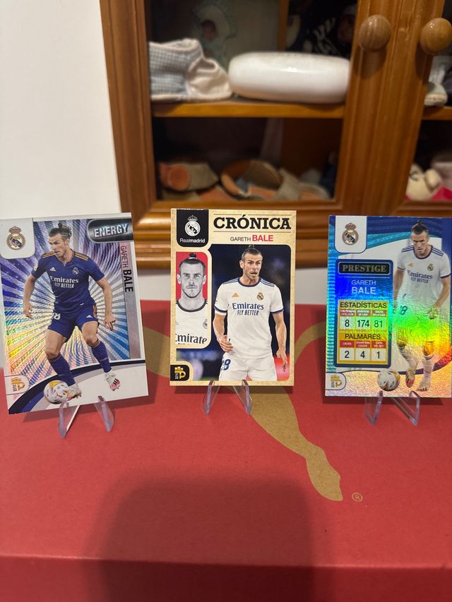 Detalles del productoVendo tres cromos de Gareth Bale del Real Madrid. Son de la colección Prestige, Energy y Crónica. Están en perfecto estado y se venden juntos. - Incluye tres cromos de Gareth Bale. - Cromos de las colecciones Prestige, Energy y Crónica. - Están en muy buen estado.