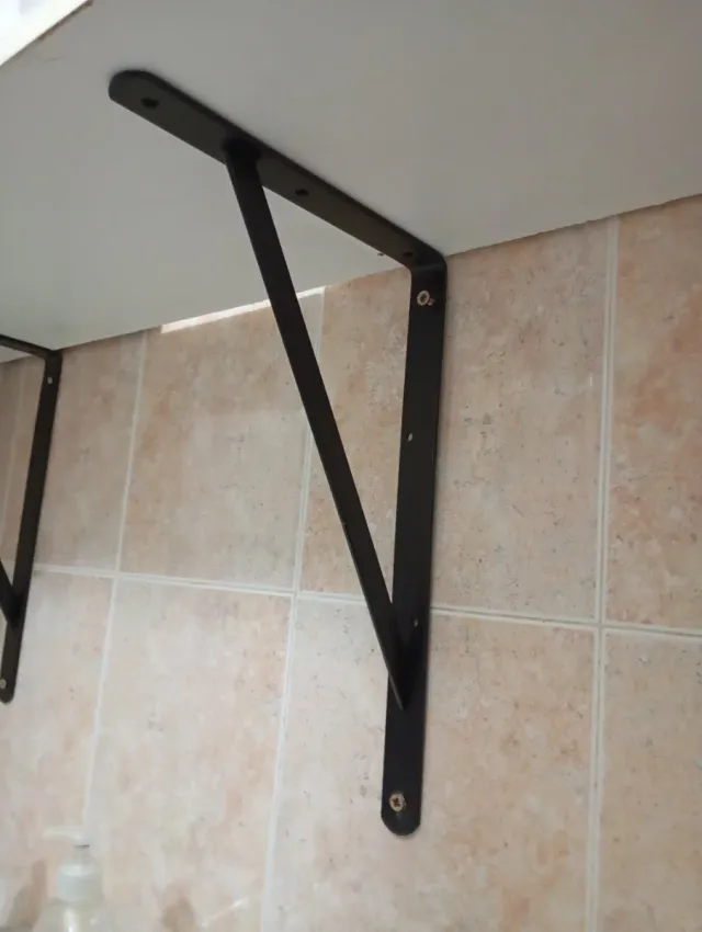 Set de tres escuadras metálicas en ángulo recto. Son muy resistentes y robustas. - Color negro. - Diseño en L.