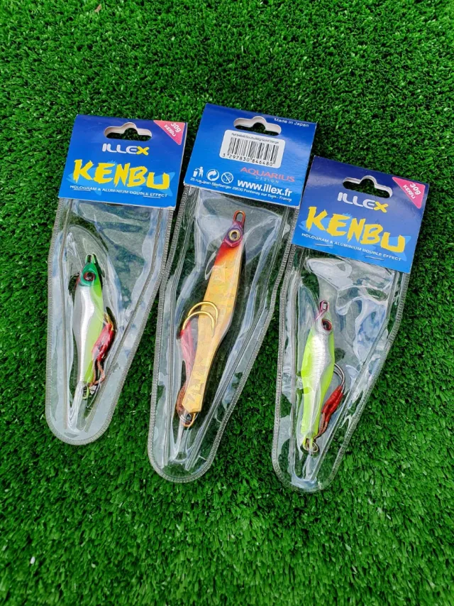 Detalles del productoLote de tres señuelos de pesca ILLEX 2 KENBU de 30g cada uno y uno SOUBU de 60 gramos. Fabricados en Japón. Llevan las dos caras del cuerpo diferentes con acabado holográfico que producen fantásticos destellos y van equipados con doble ASSIST