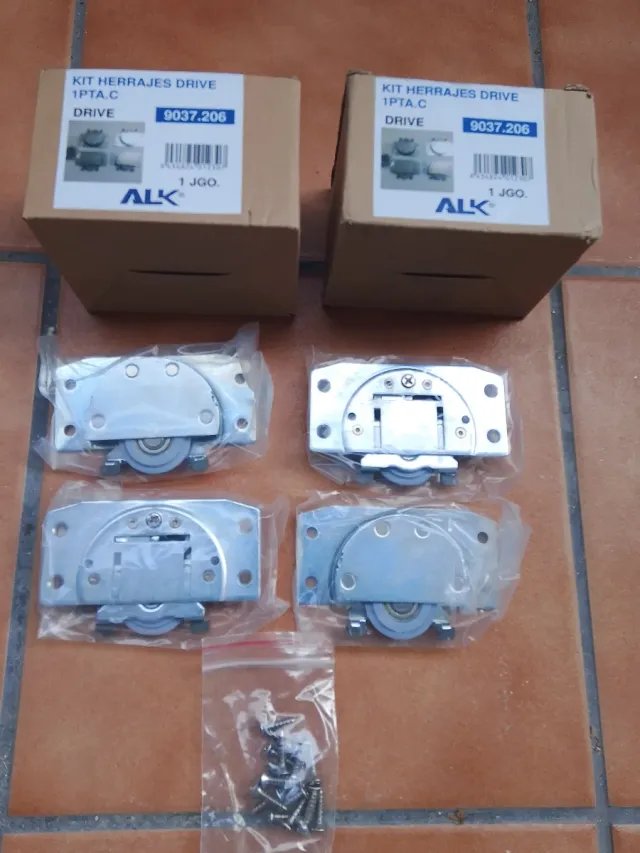 Detalles del productoSe venden 3 kits de herrajes para puertas correderas de la marca ALK. .NO ENVIO