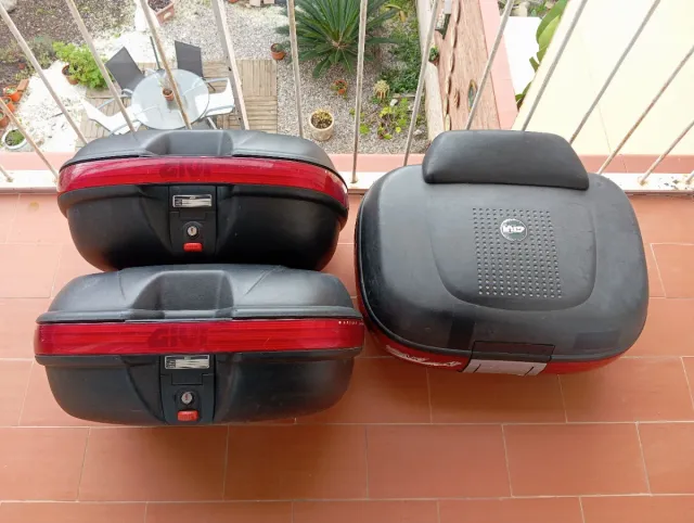 Detalles del productoSet de tres maletas para moto de la marca GIVI. Ideales para transportar equipaje de forma segura.