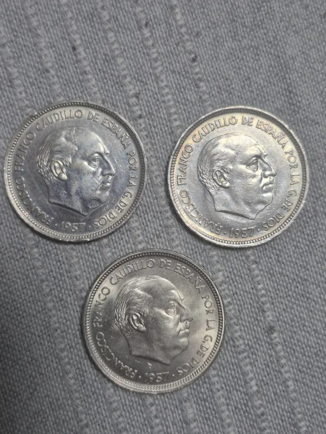 Detalles del productoConjunto de tres monedas de 50 pesetas del año 1957.