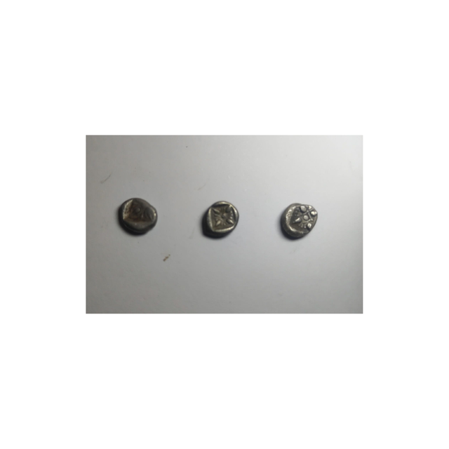 Tres piezas con más de 2400 años, representativas de las primeras acuñaciones griegas.