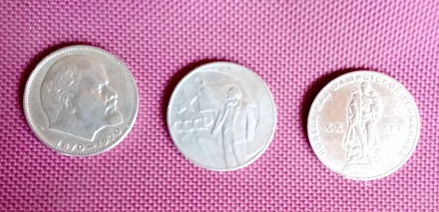 Detalles del productoSe venden tres monedas de un rublo de la época de la URSS. Son monedas antiguas y presentan un buen estado de conservación.