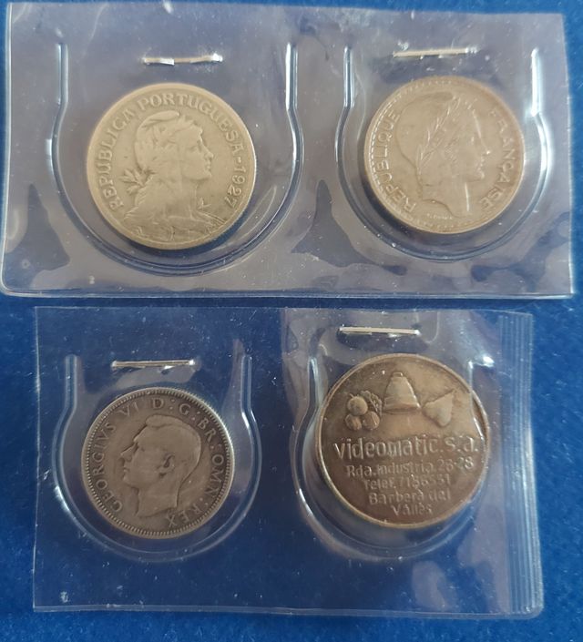 Detalles del productoLote de 3 monedas y 1 ficha antiguas: