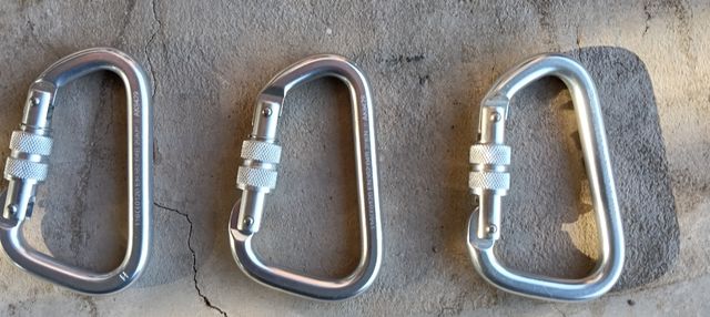 Detalles del productoTres mosquetones de acero para escalada en perfecto estado. Son ideales para asegurar en actividades al aire libre.
