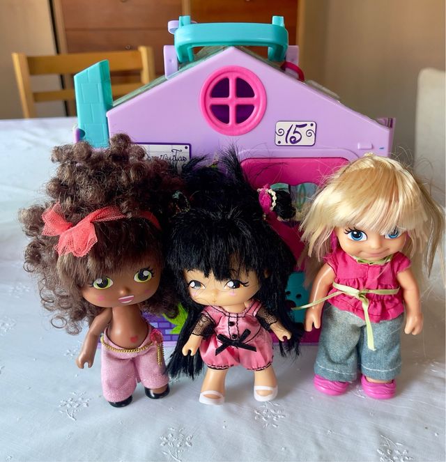 3 Muñecas Barriguitas + Casa Portátil