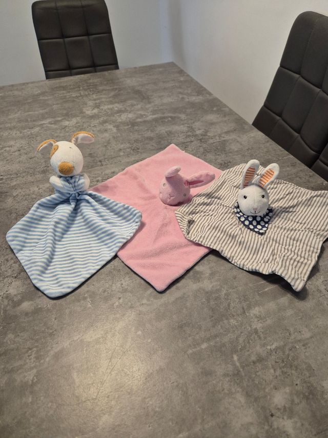 Se venden tres adorables muñecos Dodo Bebé. Son ideales para bebés. - Incluyen un perrito, un conejito y un cerdito. - Están en perfecto estado. - Son suaves y tiernos.