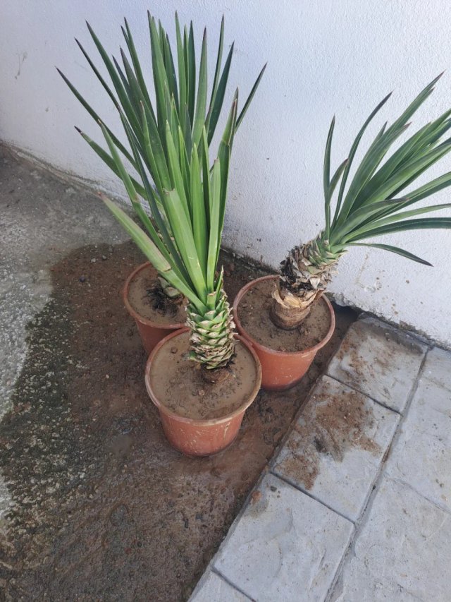 Se venden tres palmeras en maceta, ideales para decorar exteriores.