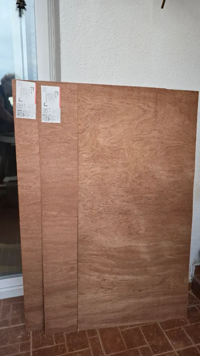 Se venden 3 placas decorativas con acabado chapado. - Diseño de madera. - Ideales para proyectos de bricolaje o decoración.