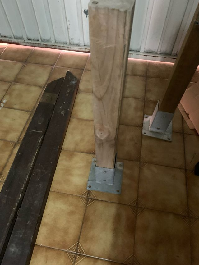 Se venden tres postes de madera con medidas de 7x7 cm de ancho y 70 cm de largo. - Material: Madera. - Dimensiones: 7 cm x 7 cm x 70 cm.