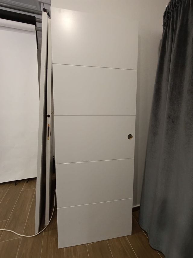 Detalles del productoSe venden 3 puertas correderas de madera en color blanco. Diseño moderno con líneas horizontales.