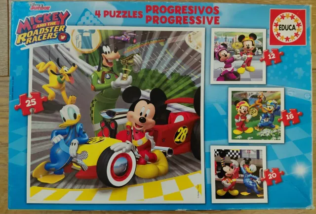 Detalles del productoPack de 3 puzzles progresivos de Mickey y los Coches de Carreras.