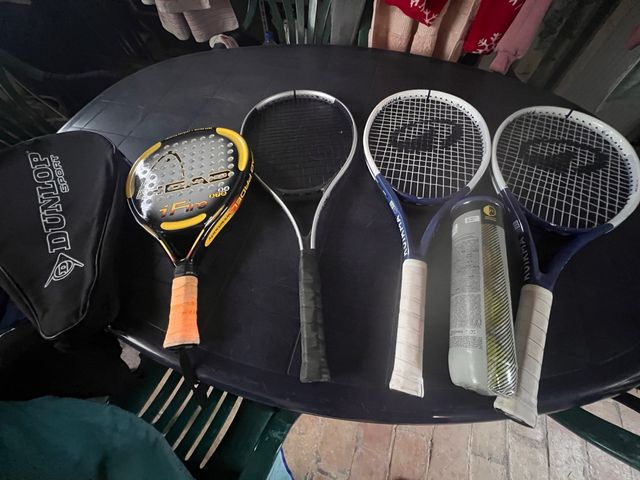 Detalles del productoLote de 3 raquetas de tenis y 1 raqueta de pádel.